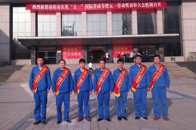 4月27日,洛陽市總工會舉行“五一”勞模表彰會,集團公司共有7名人員獲此殊榮。當日早上,新安縣總工會黨組書記、副主席王新營(前排右五)、集團公司黨委副書記王宏偉(前排左五)在縣總工會大樓前與市“五一勞動獎?wù)隆鲍@得者合影,并為他們即將赴市受獎送行。