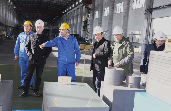 1月10日,金馬能源董事長饒朝暉、總經(jīng)理王明忠等一行到萬基控股集團參觀考察。新安縣縣長郅書安、常務副縣長付曉毅、副縣長王加祥和公司董事長李躍民、總經(jīng)理郭峰等陪同。