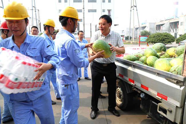 8月4日,新安縣人大副主任、縣總工會主席王保敏,副主席梁松獻到萬基鋁業(yè)一公司、二公司、萬基金屬鈉公司的電解車間等高溫崗位進行慰問,送上西瓜和礦泉水等降溫物品,使生產(chǎn)一線員工在炎炎盛夏中感受到了絲絲清涼。集團公司黨委副書記、工會主席王宏偉,副總經(jīng)理韓鐵京等陪同。