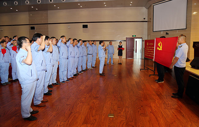 8時(shí)25分,大會(huì)在莊嚴(yán)的國(guó)歌聲中開(kāi)幕。隨后,8名新黨員面對(duì)鮮紅的黨旗,在公司黨委副書(shū)記王宏偉的帶領(lǐng)下,舉起右手,莊嚴(yán)宣誓,光榮地加入黨組織的行列;現(xiàn)場(chǎng)全體黨員隨著新黨員一起重溫了入黨誓詞。