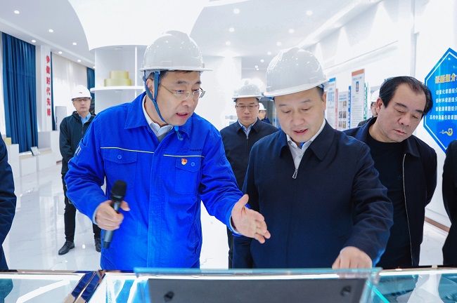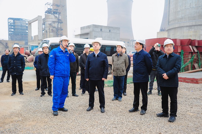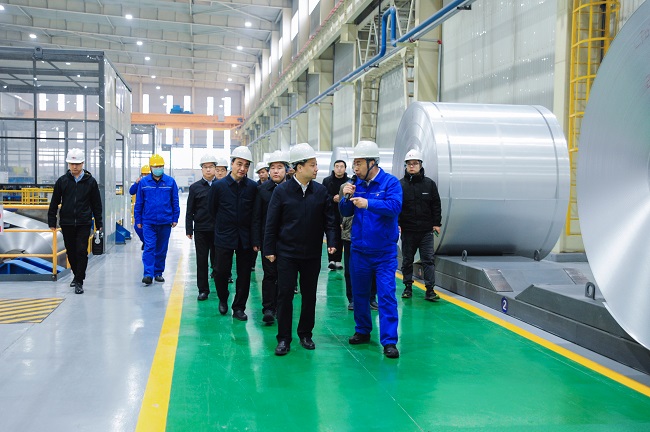 2月8日上午,河南省工信廳黨組書記、廳長李建濤, 省工信廳運(yùn)行監(jiān)測協(xié)調(diào)局局長洪波一行到萬基鋁加工、鋁鈦合金公司生產(chǎn)車間和2x60萬千瓦機(jī)組項(xiàng)目建設(shè)工地調(diào)研。洛陽市人大常委會副主任、新安縣委書記宗國明,萬基控股集團(tuán)黨委書記、董事長李躍民等陪同。