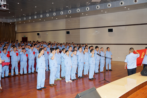 上午8時30分,身著藍(lán)色工裝的全體黨員干部在激昂的國歌聲中起立。15名新黨員面對黨旗莊嚴(yán)宣誓,光榮加入黨組織行列。在“倒逼增效、爭當(dāng)先鋒”活動中涌現(xiàn)出的27名優(yōu)秀黨員、4名優(yōu)秀黨務(wù)工作者、4個優(yōu)秀黨支部受到表彰。萬基鋁加工營銷中心板帶處業(yè)務(wù)員張功勛代表優(yōu)秀黨員、二鋁電解一車間四區(qū)區(qū)長王國峰代表新黨員分別作了典型發(fā)言。