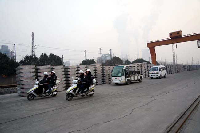 保衛(wèi)部巡邏隊(duì)員在進(jìn)行操練,堅(jiān)決打擊各種危害企業(yè)生產(chǎn)經(jīng)營秩序的違法犯罪活動。