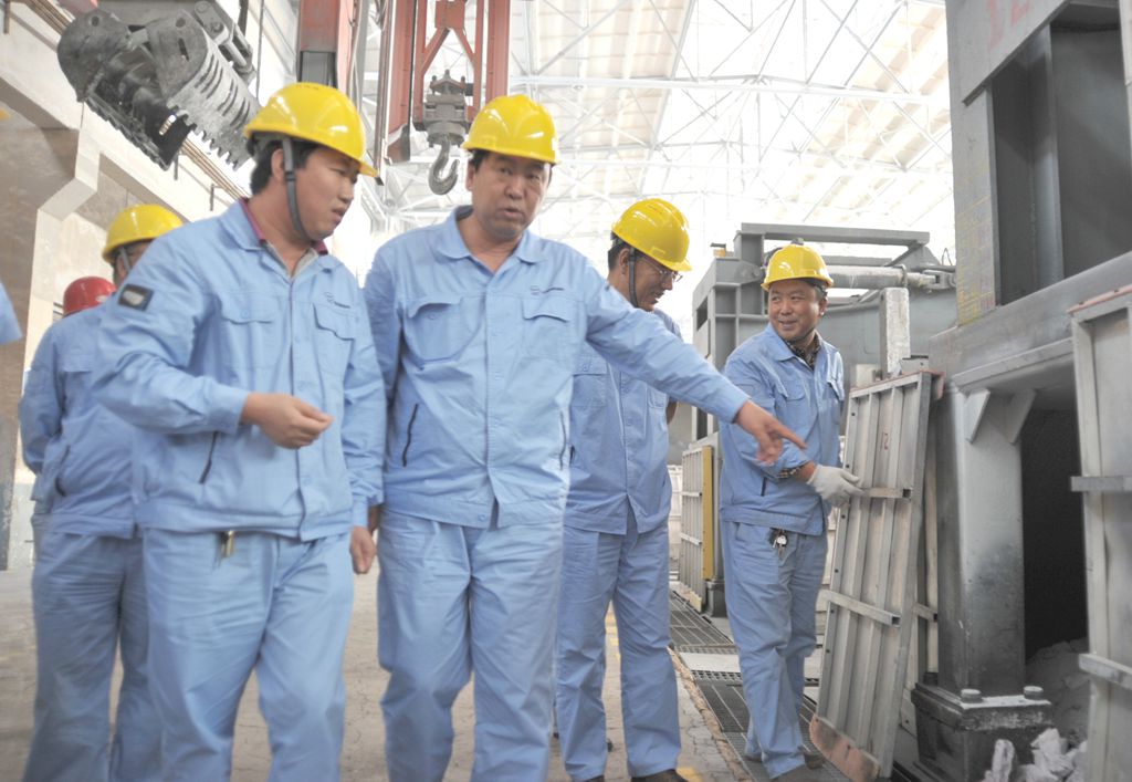 李躍民董事長(zhǎng)一行首先來(lái)到鋁業(yè)一公司鋁廠電解車間、炭素廠焙燒車間,詢問(wèn)電解槽運(yùn)行情況和炭素生產(chǎn)情況,叮囑大家要嚴(yán)格執(zhí)行工藝操作標(biāo)準(zhǔn),確保穩(wěn)定運(yùn)行;在集團(tuán)鋁加工大板錠#2線大修現(xiàn)場(chǎng),叮囑檢修人員要保證質(zhì)量,提高效率,加快進(jìn)度;在發(fā)電公司30萬(wàn)千瓦機(jī)組集控室,與值班員工親切握手,向?yàn)榧瘓F(tuán)公司效益做出突出貢獻(xiàn)的廣大干部員工表示感謝;在金屬鈉公司,看到現(xiàn)場(chǎng)治理取得明顯成效,叮囑負(fù)責(zé)人要加強(qiáng)安全管理,為員工創(chuàng)造良好的工作環(huán)境;在墻材公司,要求管理人員要降低消耗,提高產(chǎn)品質(zhì)量,加大市場(chǎng)開(kāi)拓力度;在洗浴中心和洗衣房,了解員工工作情況,叮囑要為大家提供良好服務(wù)。