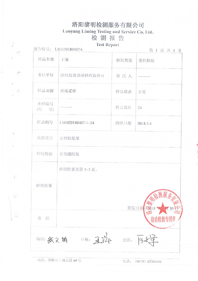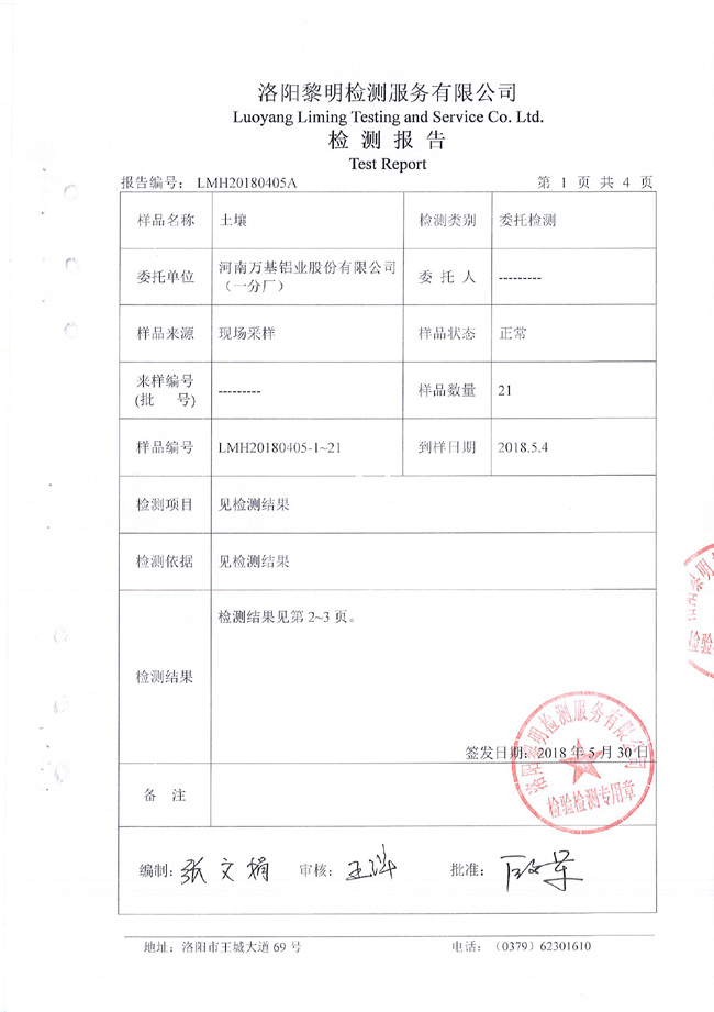 土壤檢測(cè)報(bào)告公示