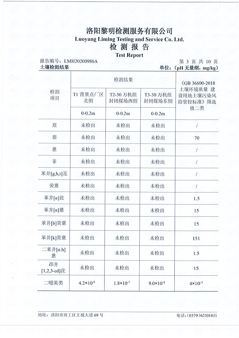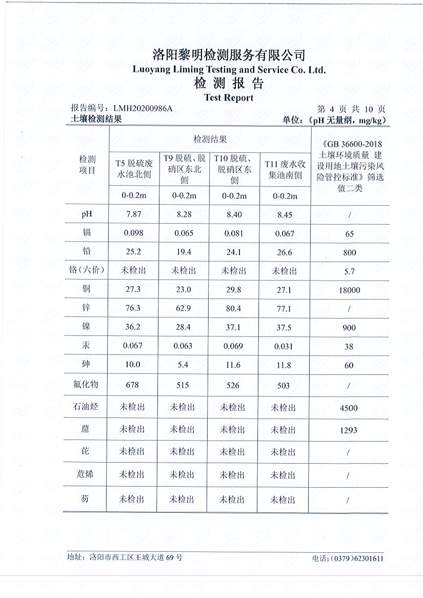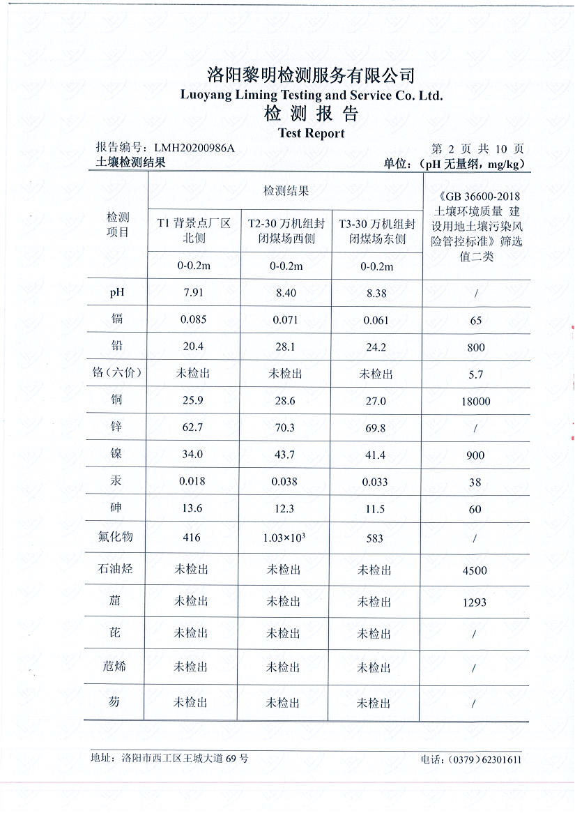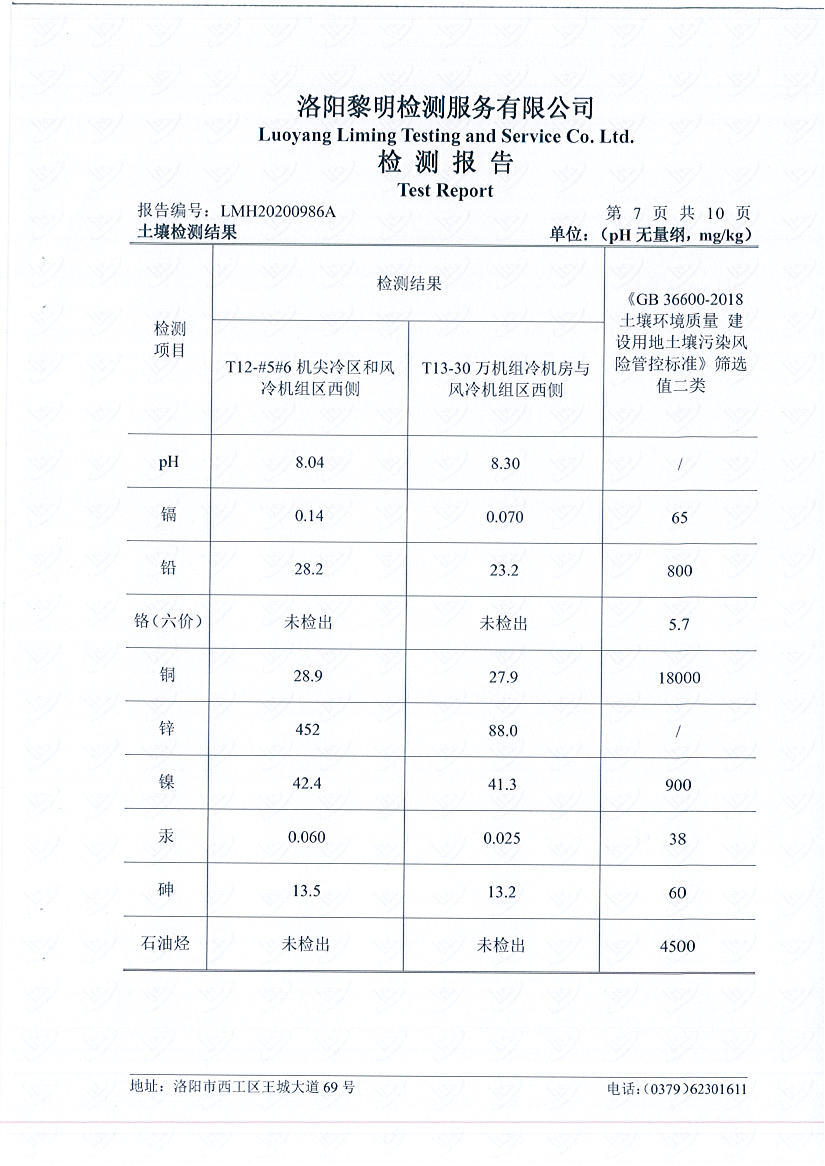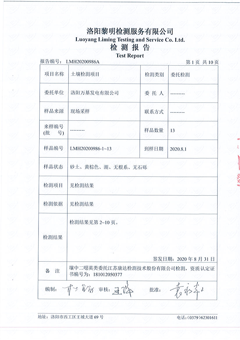 洛陽萬基發(fā)電土壤檢測報(bào)告