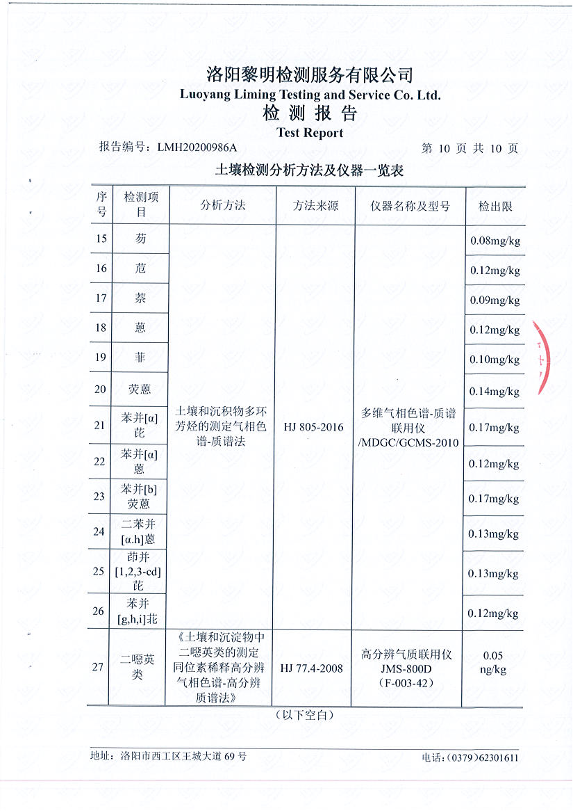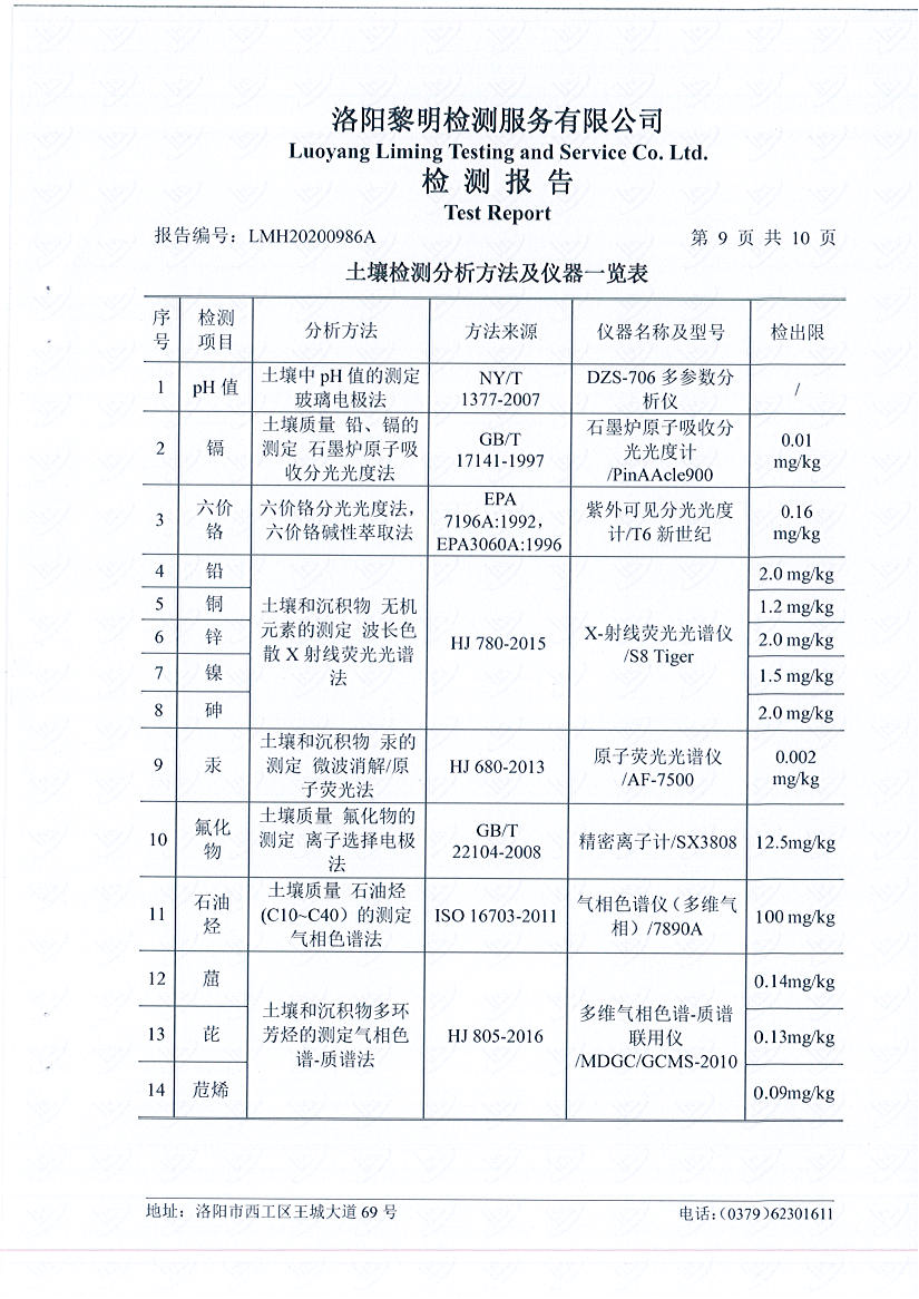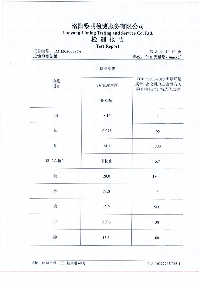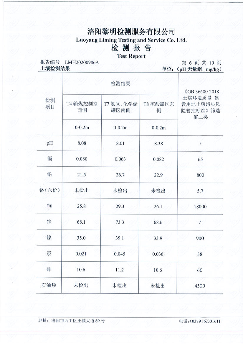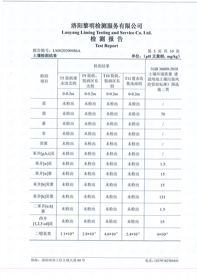 洛陽萬基發(fā)電土壤檢測報(bào)告
